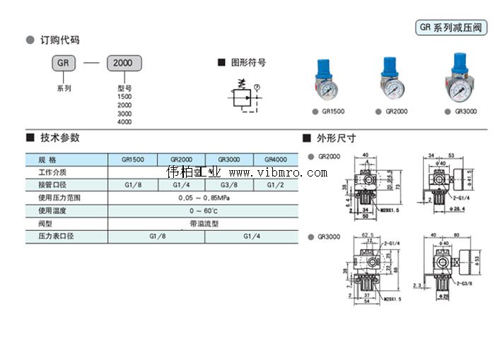 产品标题:GR3000,STNC气源处理元件,GR系列过滤减压阀
